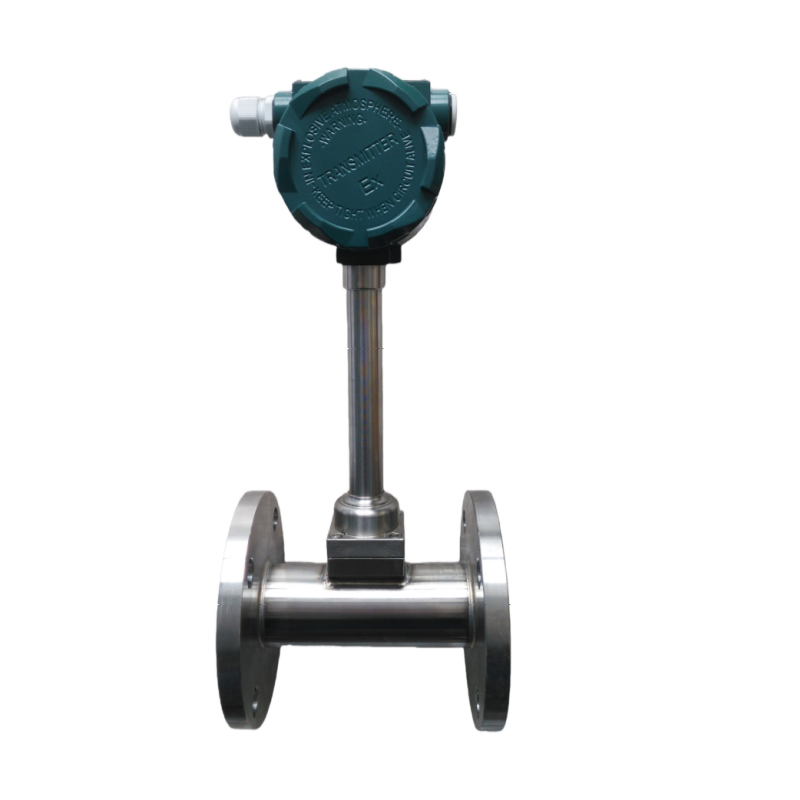 涡街流量计,DN50,测量介质为一般气体,表体材质为304不锈钢,介质温度低于250度,压力低于16公斤,DC24V供电,4-20mA输出,夹持式安装,配套碳钢安装法兰、螺栓螺母等紧固件,无显示。